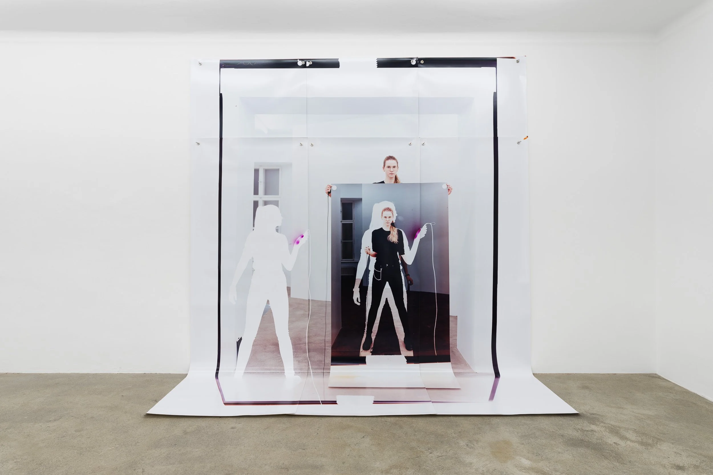 Sophie Thun, While Holding (passage closed) (Y110,8M17,4D+59F8m18,142CA3T69,2b100|249), 2018. Analogue colour photography, photogram, metal and magnets. From Sophie Thun, Double Release, exhibition view, SOPHIE TAPPEINER, 2018. Courtesy the artist & SOPHIE TAPPEINER. Copyright Maximilian Anelli-Monti.
